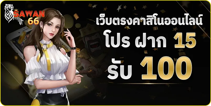 Sawan 66 เว็บสล็อตออนไลน์ เว็บตรงไม่ผ่านเอเย่นต์ ที่มาพร้อมโปรสุดคุ้ม ฝาก 15 รับ 100 ถอนได้จริงผ่านวอเลท สะดวกทุกยอดการฝากถอนผ่านระบบออโต้